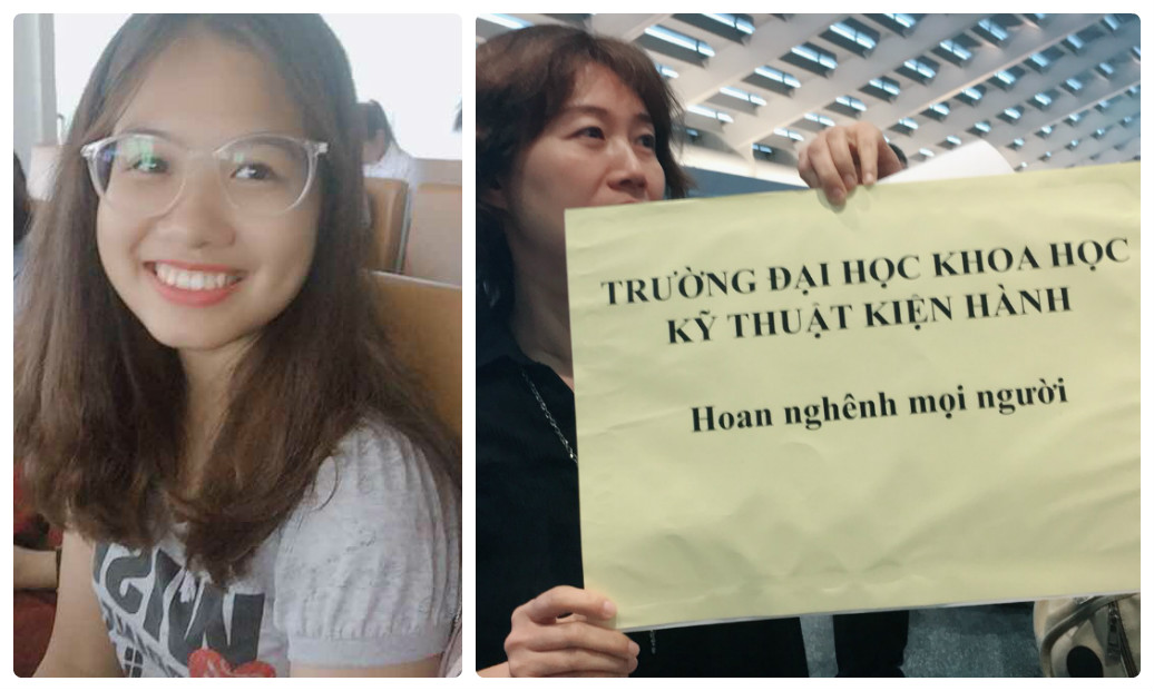 Bạn Bùi Thu Hương và đoàn du học sinh được trường đại học Đại Học khoa Học Kỹ thuật Chien Hsin đón tại sân bay Đài Loan.