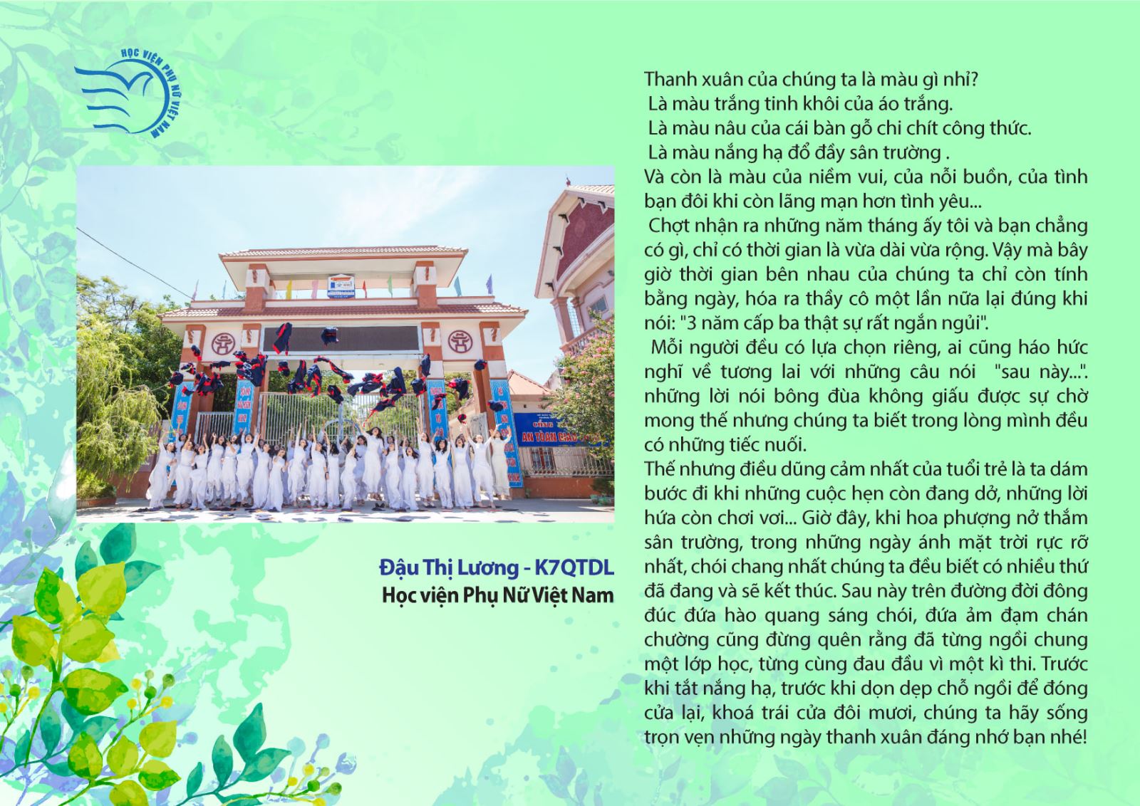 Giải HÌNH ẢNH ấn tượng: Đậu Thị Lương – K7 Quản trị Du lịch & Lữ hành, HV Phụ nữ Việt Nam
