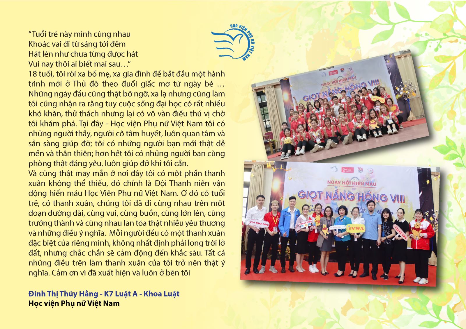 Giải BÌNH CHỌN nhiều nhất: Đinh Thị Thúy Hằng – K7 Luật A, HV Phụ nữ Việt Nam