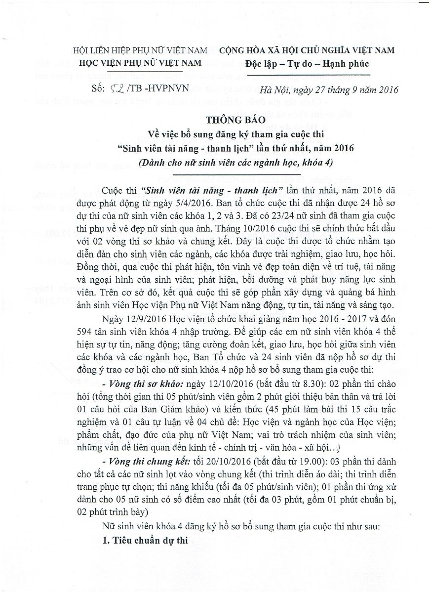 Thông báo đăng ký bổ sung cuộc thi Sinh viên Tài năng - Thanh lịch dành cho K4