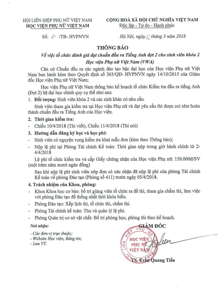 Tin tứcThông báo đăng ký đánh giá đạt chuẩn đầu ra Tiếng Anh đợt 2 cho sinh viên khóa II Posted on Tháng Ba 13, 2018 by admin(full) 13 Th3 Mời bạn đọc download Mẫu đơn xin đăng ký kiểm tra Tiếng Anh TẠI ĐÂY admin(full) Thí sinh đăng ký xét tuyển từ 1-4, cách tính điểm như cũ Kế hoạch phối hợp tổ chức phiên giao dịch việc làm chuyên đề Thanh niên 2018