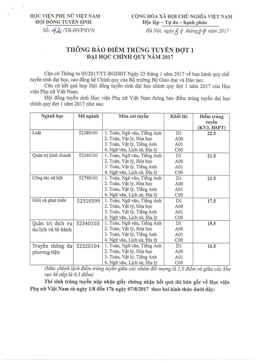 THÔNG BÁO ĐIỂM VÀ DANH SÁCH TRÚNG TUYỂN ĐẠI HỌC ĐỢT 1 - 2017