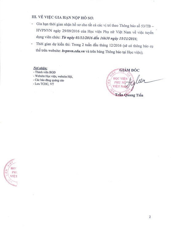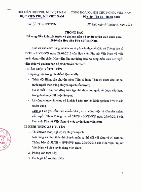 Thông báo điều kiện xét tuyển và gia hạn nộp hồ sơ dự tuyển viên chức 2016