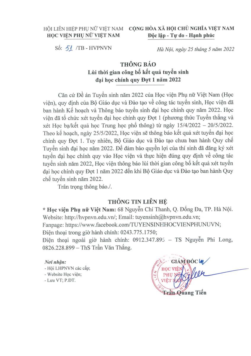 Tin tứcTHÔNG BÁO LÙI THỜI GIAN CÔNG BỐ KẾT QUẢ XÉT TUYỂN ĐỢT 1, 2022 Posted on Tháng Năm 25, 2022 by admin(full) 25 Th5 admin(full) Tập huấn công tác tuyển sinh 2022 Sinh hoạt chuyên đề: “Đưa Nghị quyết Đại hội Phụ nữ toàn quốc lần thứ XIII vào cuộc sống”