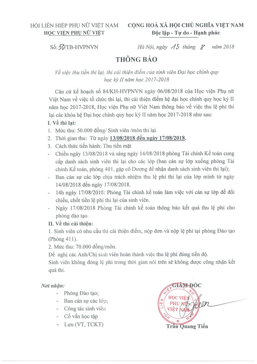 Tin tứcThông báo thu tiền thi lại, thi cải thiện điểm, học phí của sinh viên đại học chính quy HKII Posted on Tháng Tám 14, 2018 by admin(full) 14 Th8 Xem Thông báo về việc thu học phí, phí nội trú và các khoản phí khác TẠI ĐÂY admin(full) Kế hoạch tổ chức tuần sinh hoạt công dân – sinh viên dành cho K3, K5 và K6 (trúng tuyển 2018)Thông báo thủ tục xét miễn giảm học phí, hỗ trợ chi phí học tập HKI năm học 2018 – 2019