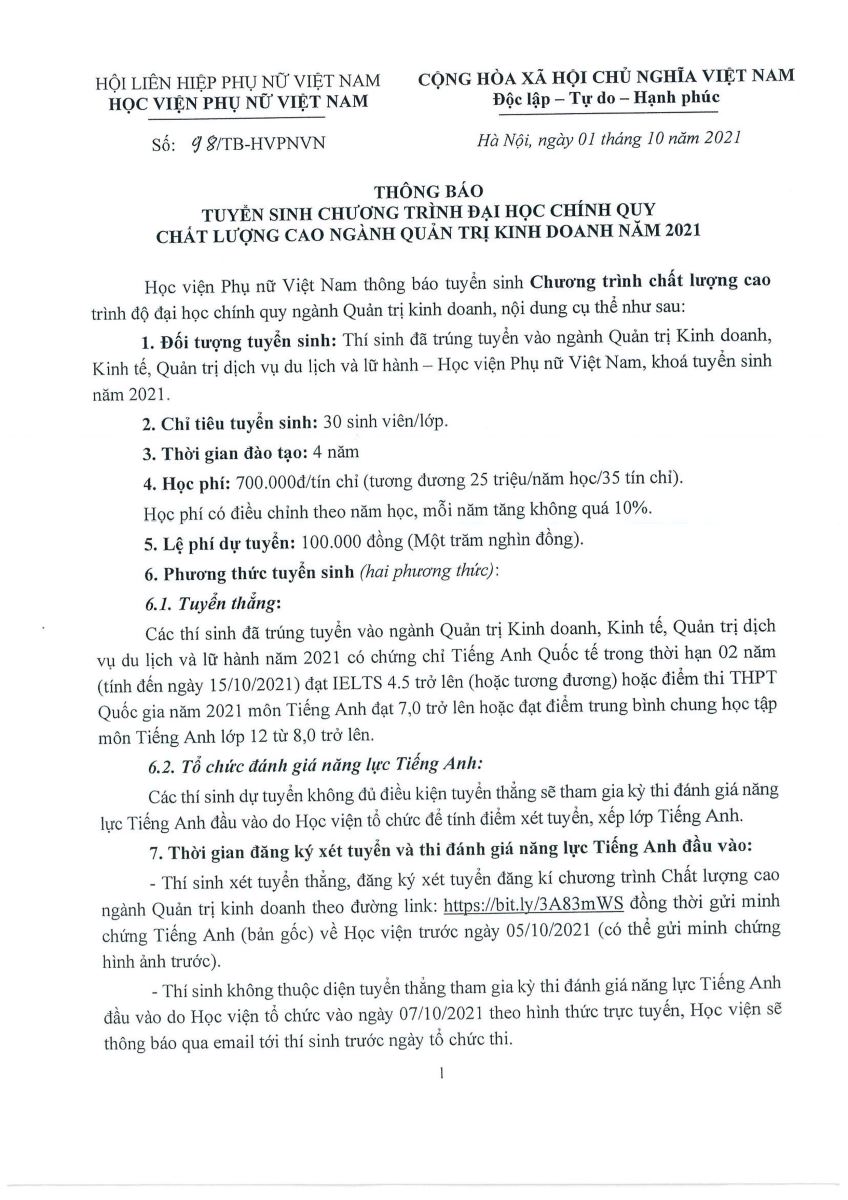 Tin tứcThông báo tuyển sinh ĐH ngành QTKD chất lượng cao Posted on Tháng Mười 4, 2021 by admin(full) 04 Th10 Thí sinh có nhu cầu xét tuyển vào ngành Quản trị kinh doanh chương trình chất lượng cao mời đăng ký TẠI ĐÂY admin(full) Hướng dẫn đăng nhập hệ thống học tập trực tuyến LMS Thông báo kết quả xét duyệt đề tài NCKH của sinh viên cấp Học viện