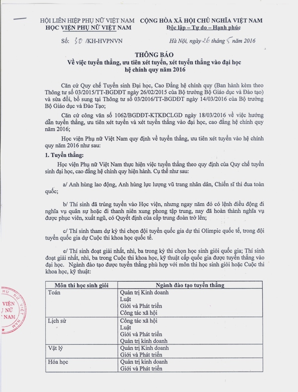 Thông báo ưu tiên xét tuyển và tuyển thẳng đại học 2016