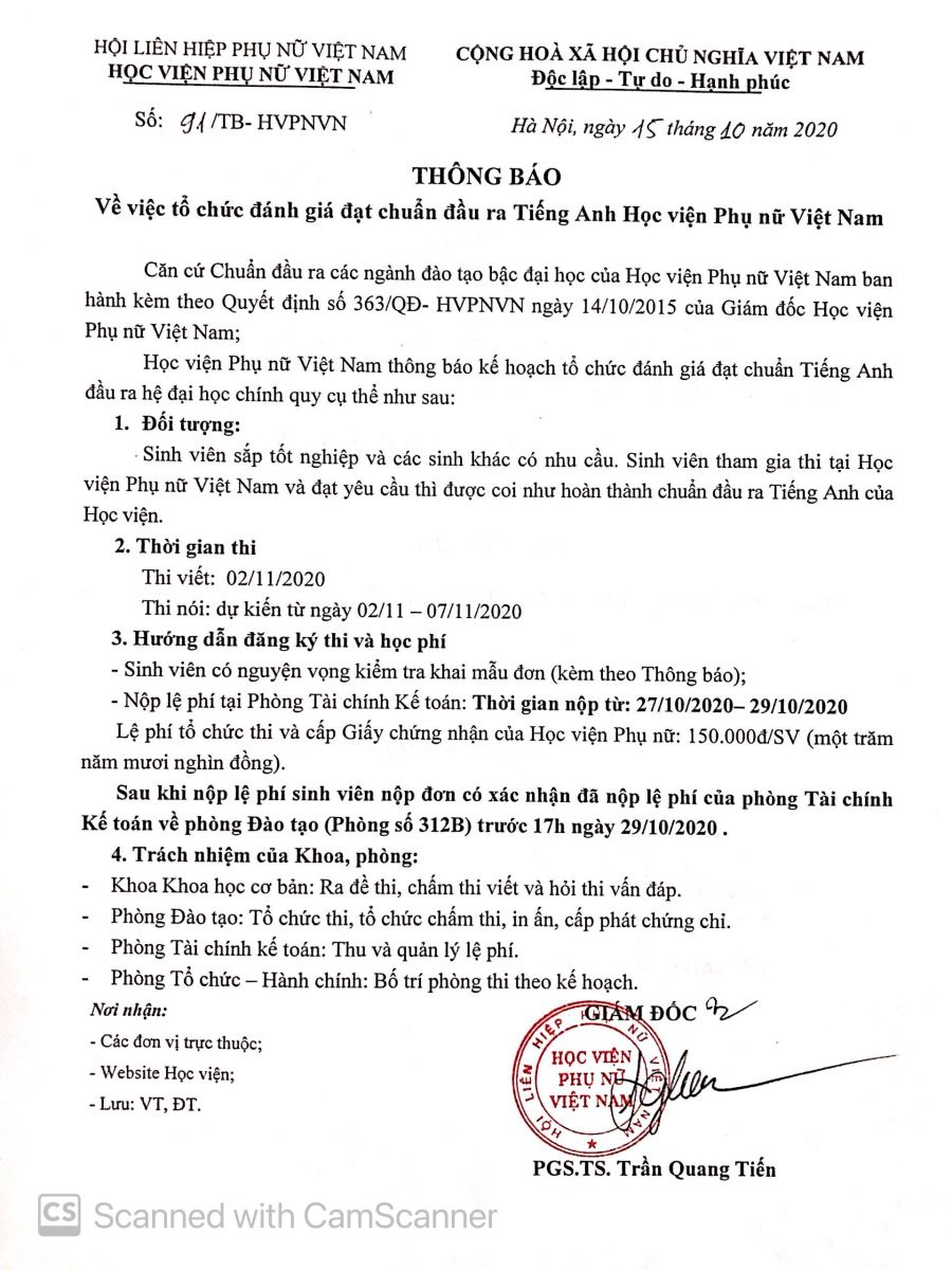 Thông báo về kỳ thi chuẩn đầu ra Tiếng Anh