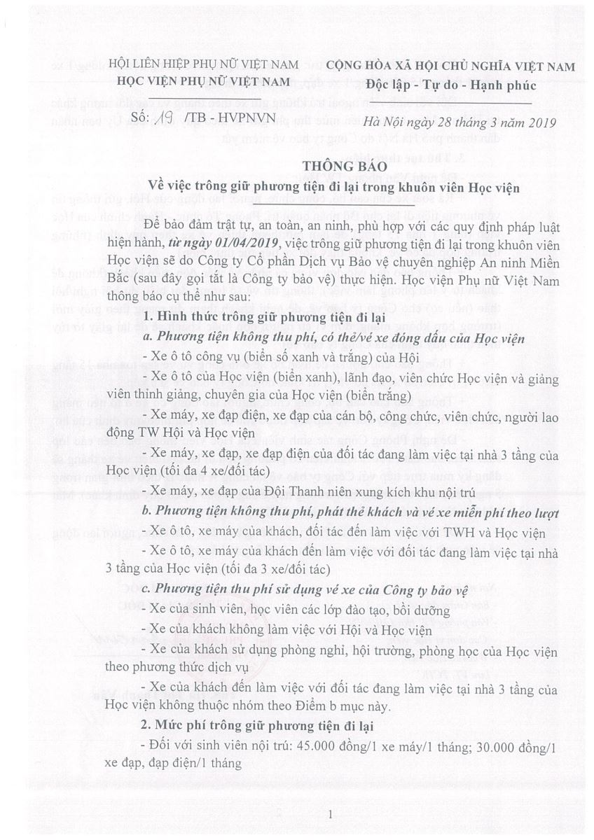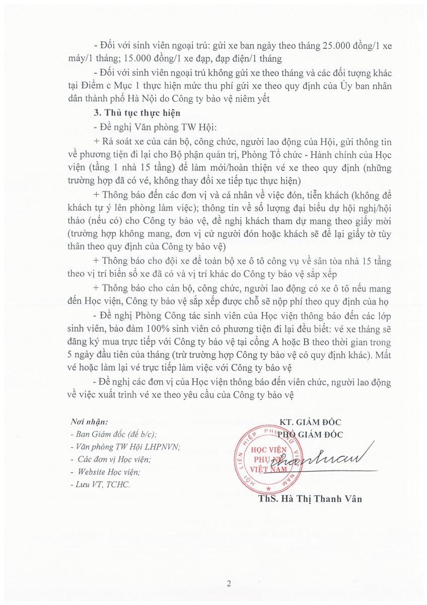 Tin tứcThông báo về việc trông giữ phương tiện đi lại trong khuôn viên Học viện Posted on Tháng Ba 28, 2019 by admin(full) 28 Th3 admin(full) Kế hoạch tổ chức tuần sinh hoạt kỹ năng mềmQuyết định về việc sinh viên được hưởng chế độ chính sách HKII, năm học 2018 – 2019