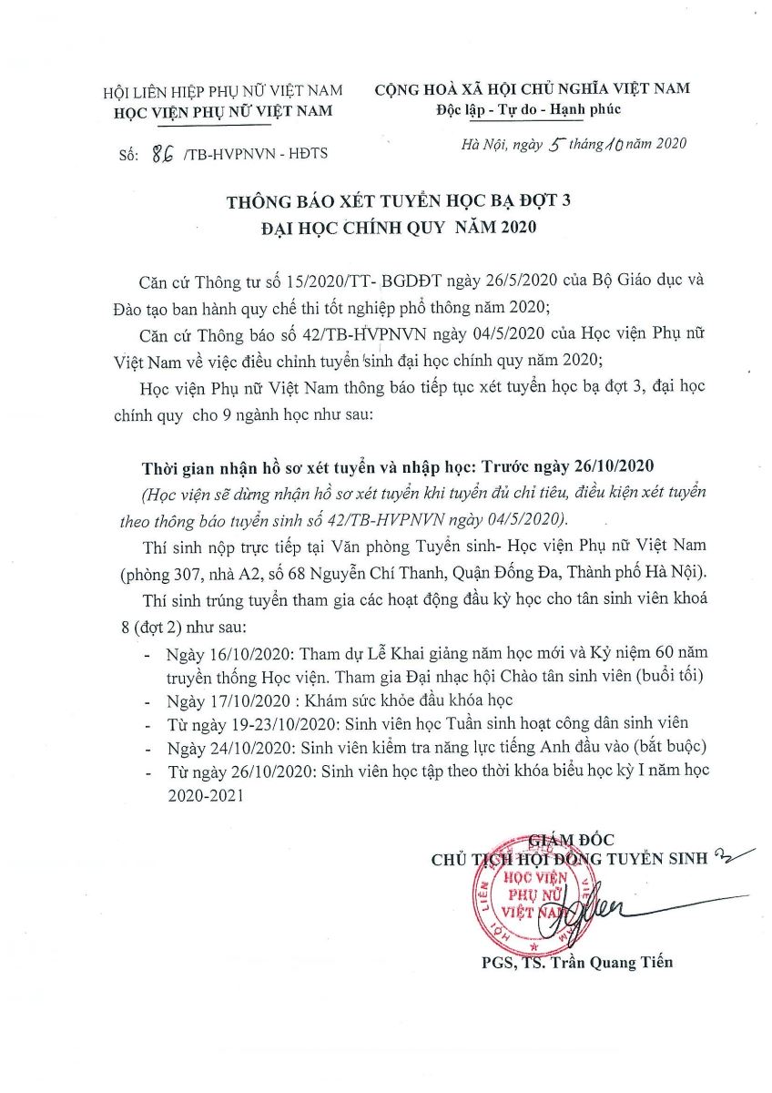 Tin tứcThông báo XÉT HỌC BẠ đợt 3 Posted on Tháng Chín 5, 2020 by admin(full) 05 Th9 THÔNG BÁO SỐ 42 VỀ VIỆC ĐIỀU CHỈNH TUYỂN SINH ĐH CHÍNH QUY NĂM 2020 admin(full) Thông báo kết quả tuyển dụng nhân sự năm 2020 Thông báo về việc thu hồ sơ xét chế độ chính sách cho sinh viên K8 HK1, năm học 2020-2021