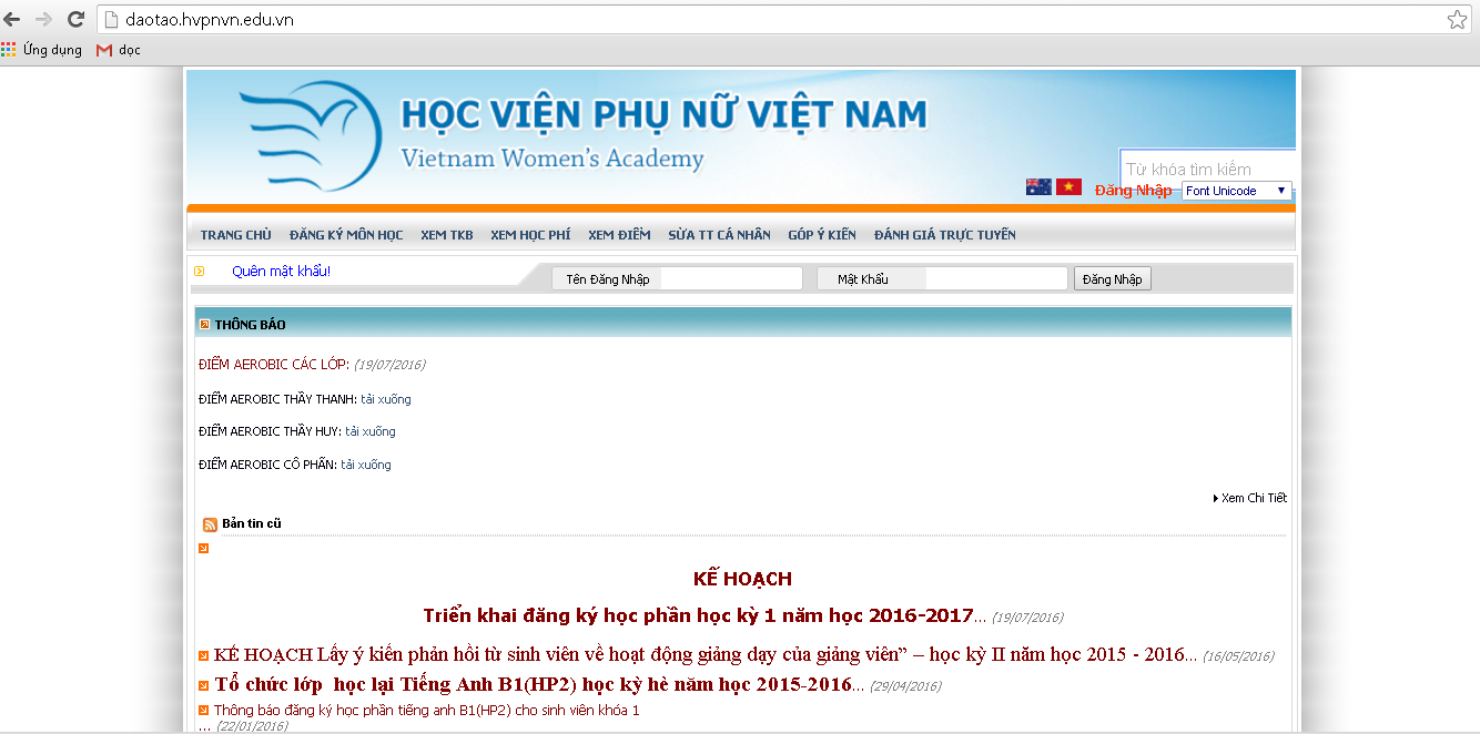 Cổng thông tin đào tạo có chức năng cung cấp thông tin về Chương trình đào tạo, Chương trình khung, Kế hoạch học tập, Thời khóa biểu cùng những thông tin mới nhất về các vấn đề liên quan đến việc học tập tại Học viện Phụ nữ Việt Nam của sinh viên.