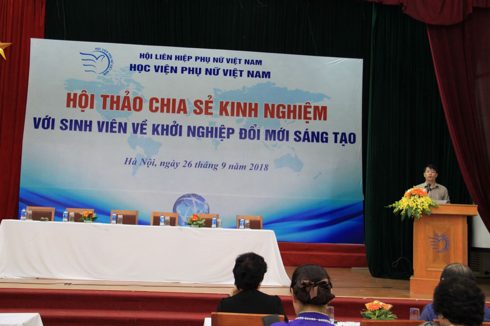 Tại buổi tọa đàm, TS. Trần Quang Tiến đã phát biểu chào mừng và cảm ơn những vị khách mời đã dành thời gian đến chia sẻ kiến thức, kinh nghiệm thực tế của bản thân trong quá trình hình thành doanh nghiệp của bản thân. Các hoạt động của Sự kiện “Phụ nữ khởi nghiệp sáng tạo” được tổ chức nhằm hướng tới việc nâng cao nhận thức của sinh viên, đồng thời tạo sự ảnh hưởng tích cực tới cộng đồng doanh nghiệp về khởi nghiệp đổi mới sáng tạo và bảo vệ môi trường, góp phần thực hiện hiệu quả Chương trình “Quốc gia khởi nghiệp” của Chính phủ. Giám đốc hi vọng rằng buổi tọa đàm sẽ giúp các bạn sinh viên hình thành rõ hơn những cơ hội, hướng đi và các bước để lập trình kế hoạch kinh doanh đồng thời mở rộng cơ hội cho các em nhận được sự hỗ trợ từ chính các doanh nghiệp tham gia tọa đàm.