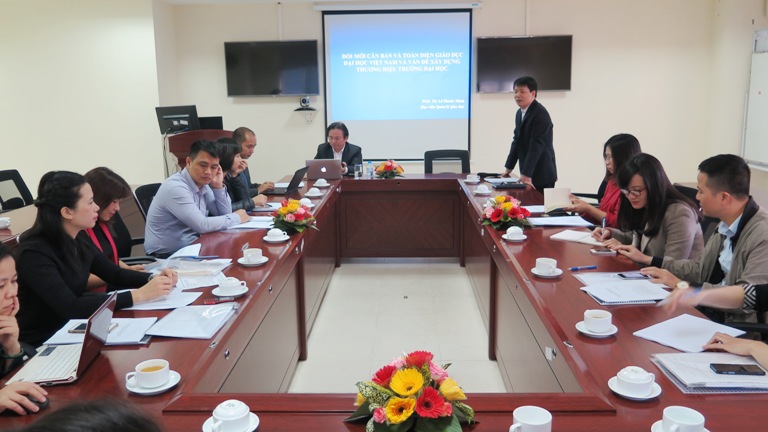 Phát biểu khai mạc hội thảo, TS. Trần Quang Tiến nhấn mạnh yêu cầu đổi mới đáp ứng nhu cầu của giáo dục đại học hiện nay đối với các cơ sở đào tạo. Học viện Phụ nữ Việt Nam dù mới được thành lập từ năm 2012 trên cơ sở nâng cấp từ Trường Cán bộ Phụ nữ TW nhưng bước đầu đã dần khẳng định được uy tín, chất lượng đào tạo thể hiện ở sự lựa chọn của phụ huynh, sinh viên, học viên tham gia học tập tại đây. Mặc dù vậy, yêu cầu phát triển về quy mô, chương trình, dịch vụ …nhằm đáp ứng nhu cầu xã hội luôn đặt ra những thách thức, đòi hỏi mỗi cá nhân và tập thể Học viện cần chuyên tâm, sáng tạo không ngừng để xây dựng Học viện phát triển bền vững và chuyên biệt. Giám đốc hy vọng hội thảo là cơ hội tốt để Học viện chia sẻ và tham khảo kinh nghiệm xây dựng và phát triển thương hiệu giáo dục đại học trong bối cảnh hiện nay từ chuyên gia, PGS.TS. Lê Phước Minh.