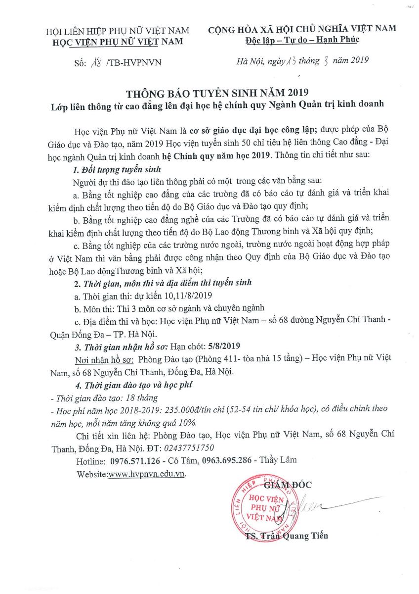 Tin tứcTuyển sinh liên thông CĐ-ĐH ngành Quản trị kinh doanh Posted on Tháng Ba 14, 2019 by admin(full) 14 Th3 Tải mẫu đơn đăng ký TẠI ĐÂY và gửi email về địa chỉ: daotao@vwa.edu.vn admin(full) 200 sinh viên Học viện Phụ nữ Việt Nam tham gia Lễ phát động Năm An toàn cho phụ nữ và trẻ emHọc viện Phụ nữ Việt Nam tổ chức khóa tập huấn: Truyền thông trên mạng xã hội