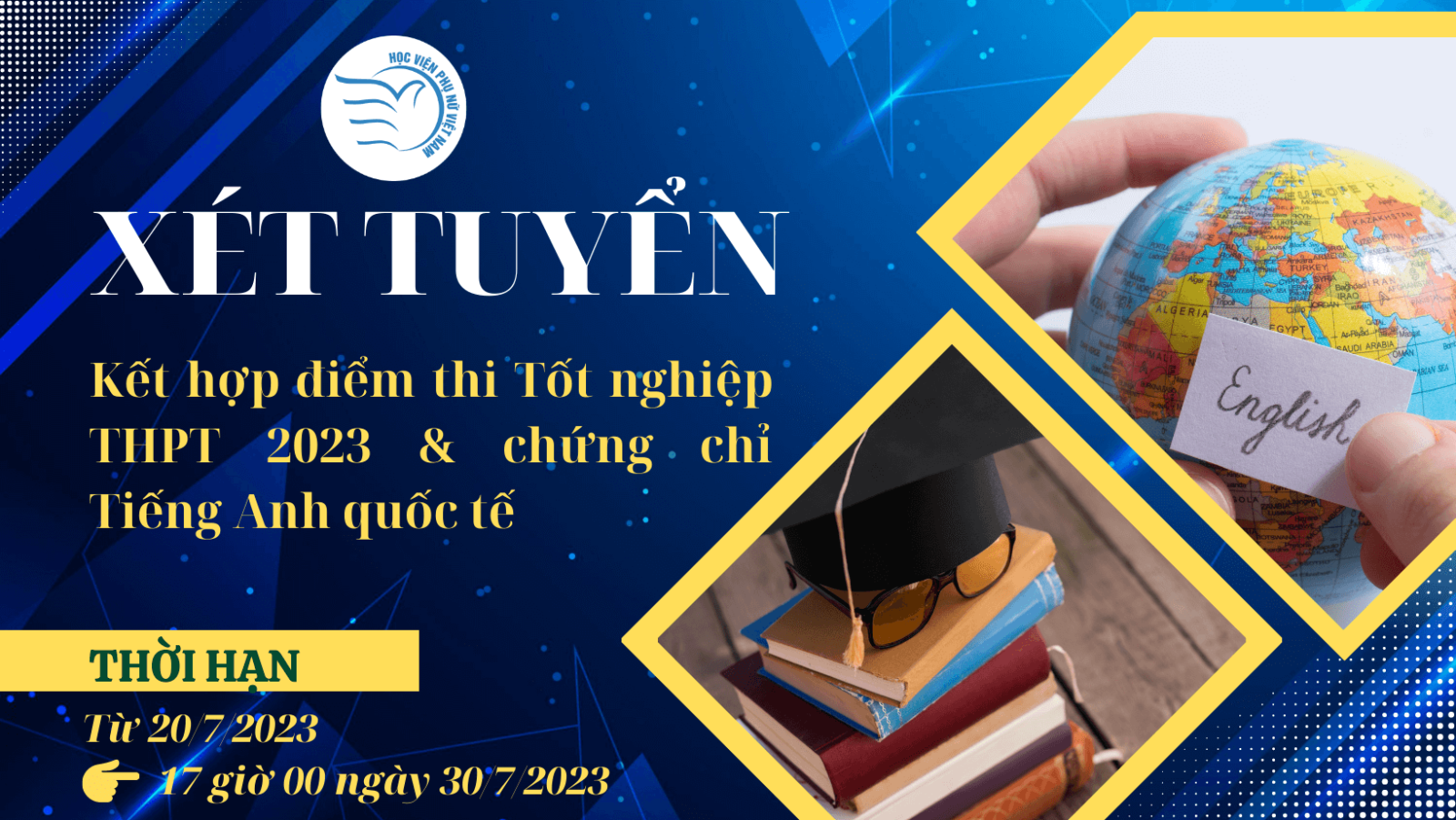 Thời gian đăng ký xét tuyển: Từ ngày 20/7/2023 đến 17 giờ 00 ngày 30/7/2023