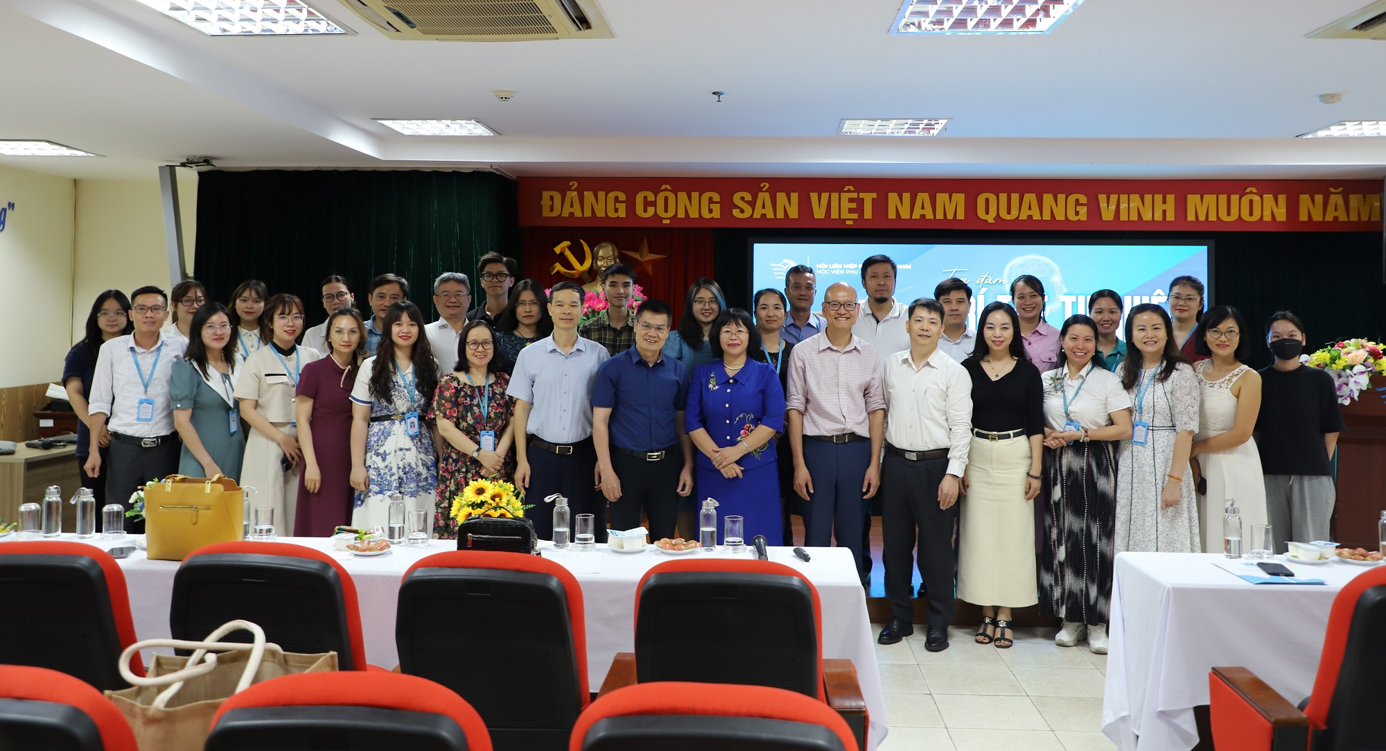 Buổi tọa đàm Trí tuệ Tự nhiên của người lãnh đạo (Xây dựng một đội ngũ Trí tuệ – Nhiệt huyết – Hạnh phúc) có sự tham gia của PGS.TS. Trần Quang Tiến – Giám đốc Học viện Phụ nữ Việt Nam, PGS.TS. Dương Kim Anh – Phó Giám đốc Học viện cùng đông đảo cán bộ, giảng viên, sinh viên tham gia. Về phía khách mời, tọa đàm có sự tham gia của Nhà báo Nguyễn Thị Thục Hạnh – Tổng biên tập báo Phụ nữ Việt Nam và đại diện lãnh đạo một số ban, đơn vị thuộc TW Hội Liên hiệp Phụ nữ Việt Nam.